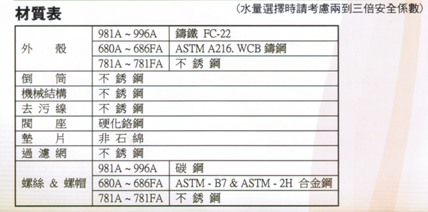 ● 零件探用不銹鋼及硬化鉻鋼閥座,耐磨抗蝕。